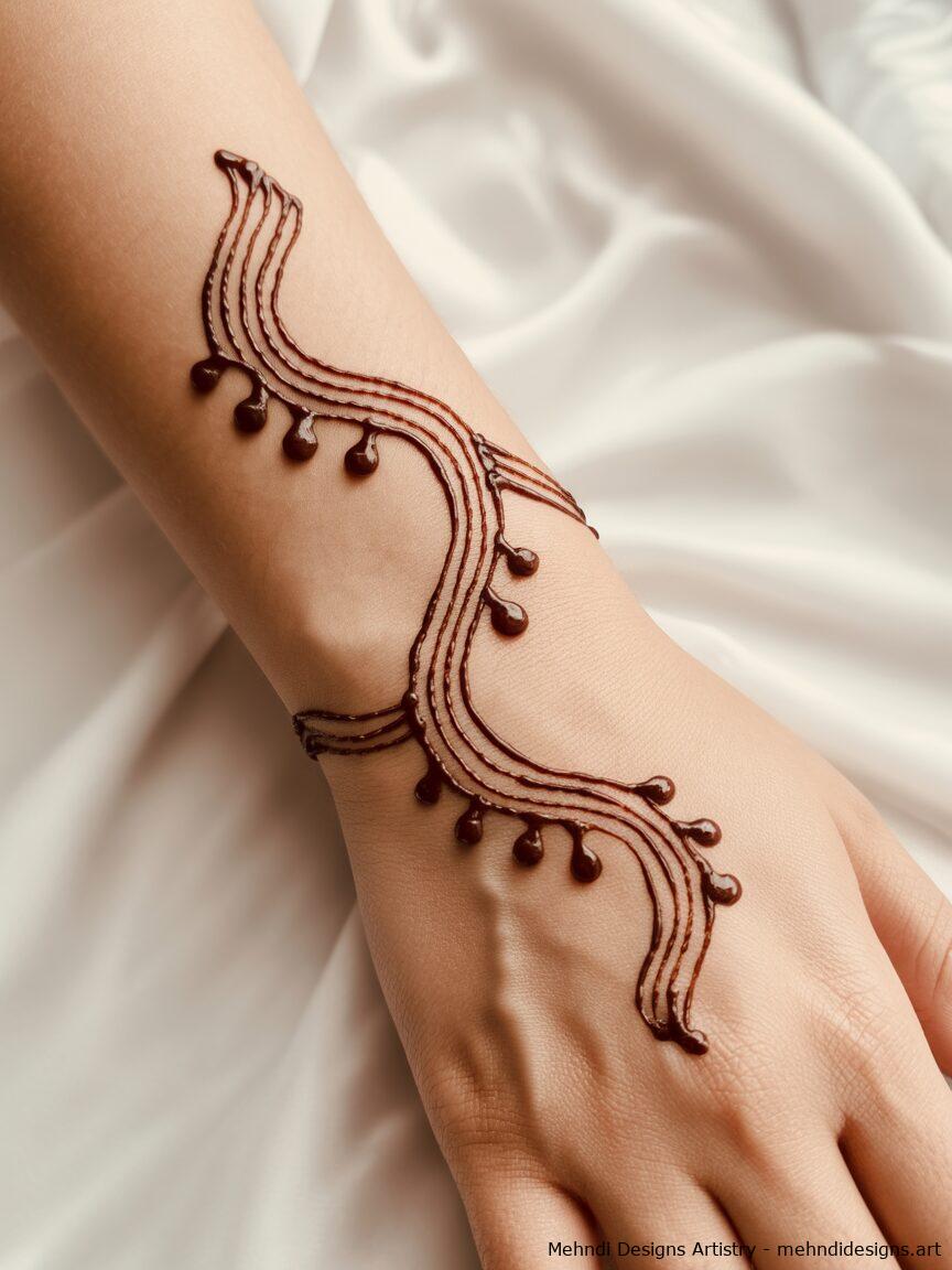 Mehndi wrapped around the wrist like a bracelet—using curves, lines, and small details—creates a jewelry-like effect without much effort.