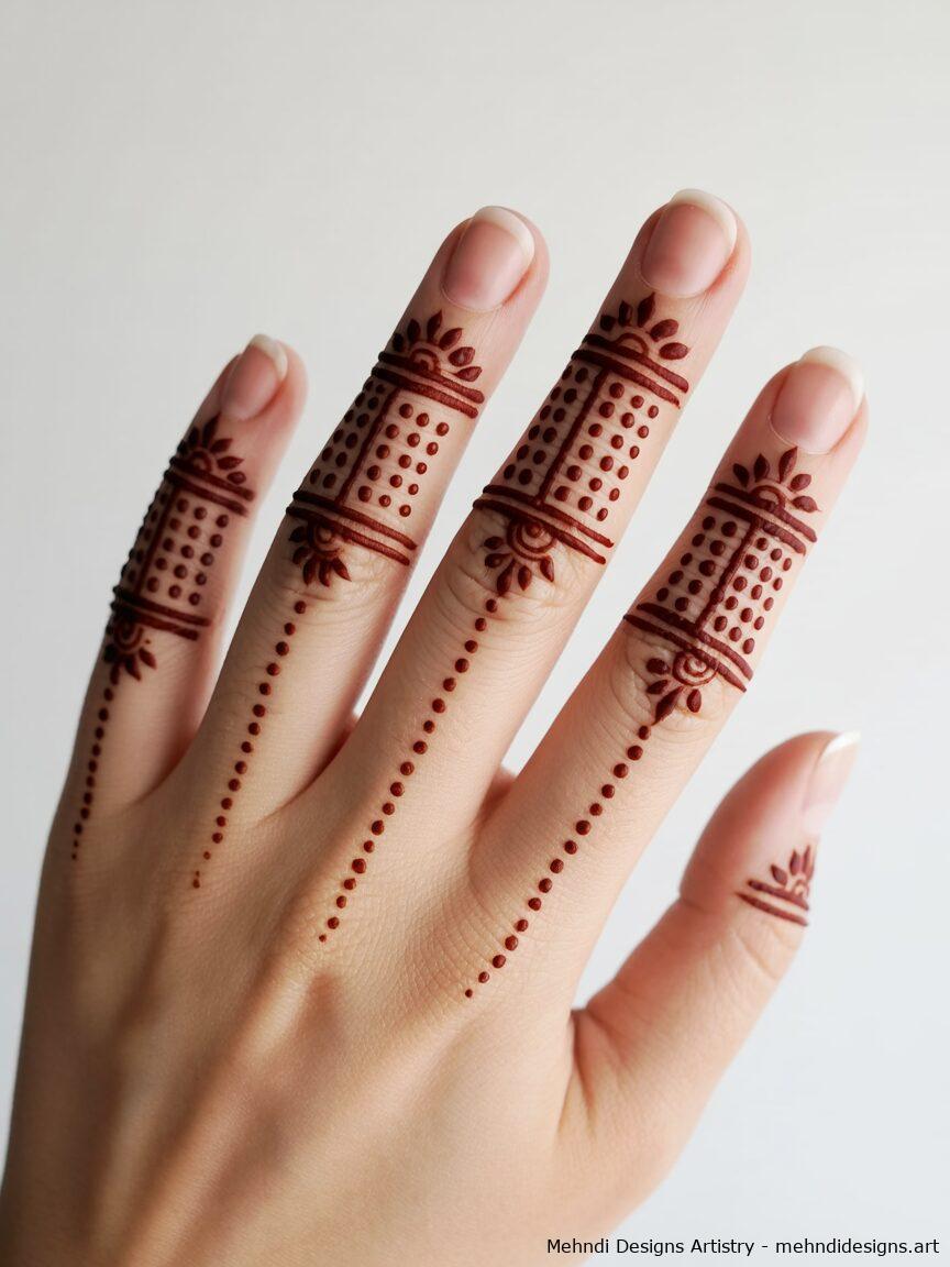 If you prefer a modern and minimalist style, try decorating just the fingertips with dots, spirals, or tiny motifs. This approach is quick and simple—perfect when you need a fast henna design.